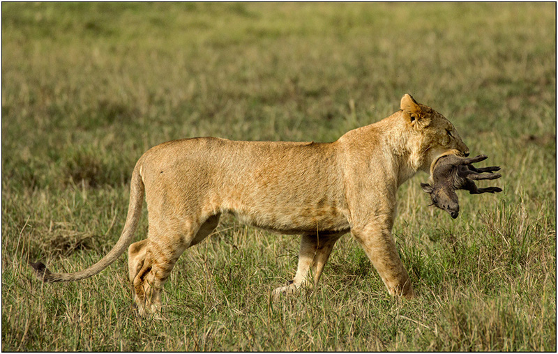 Lion with warthog