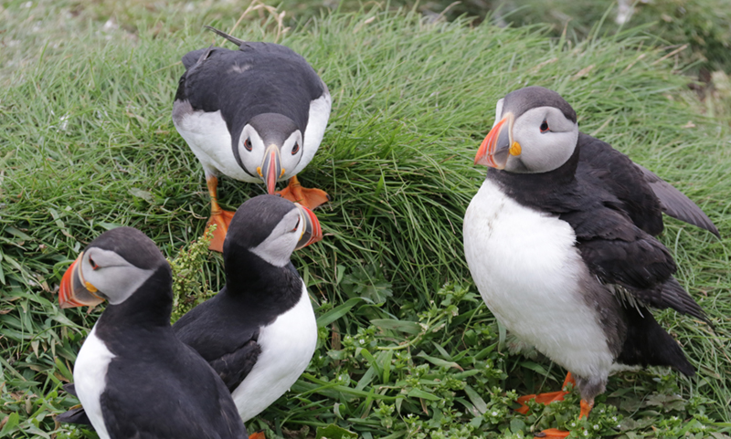 Puffins in the style of Emma Bell